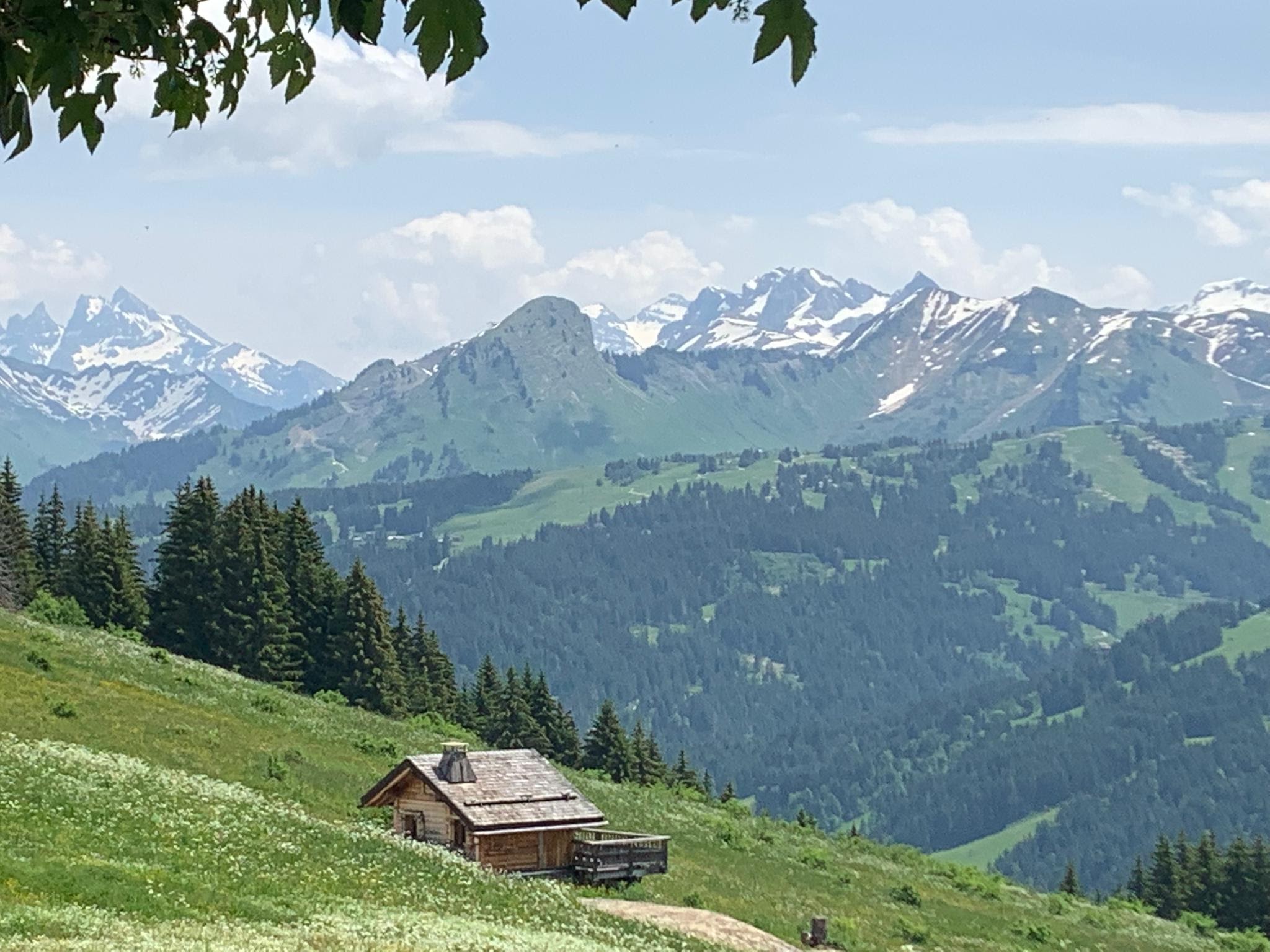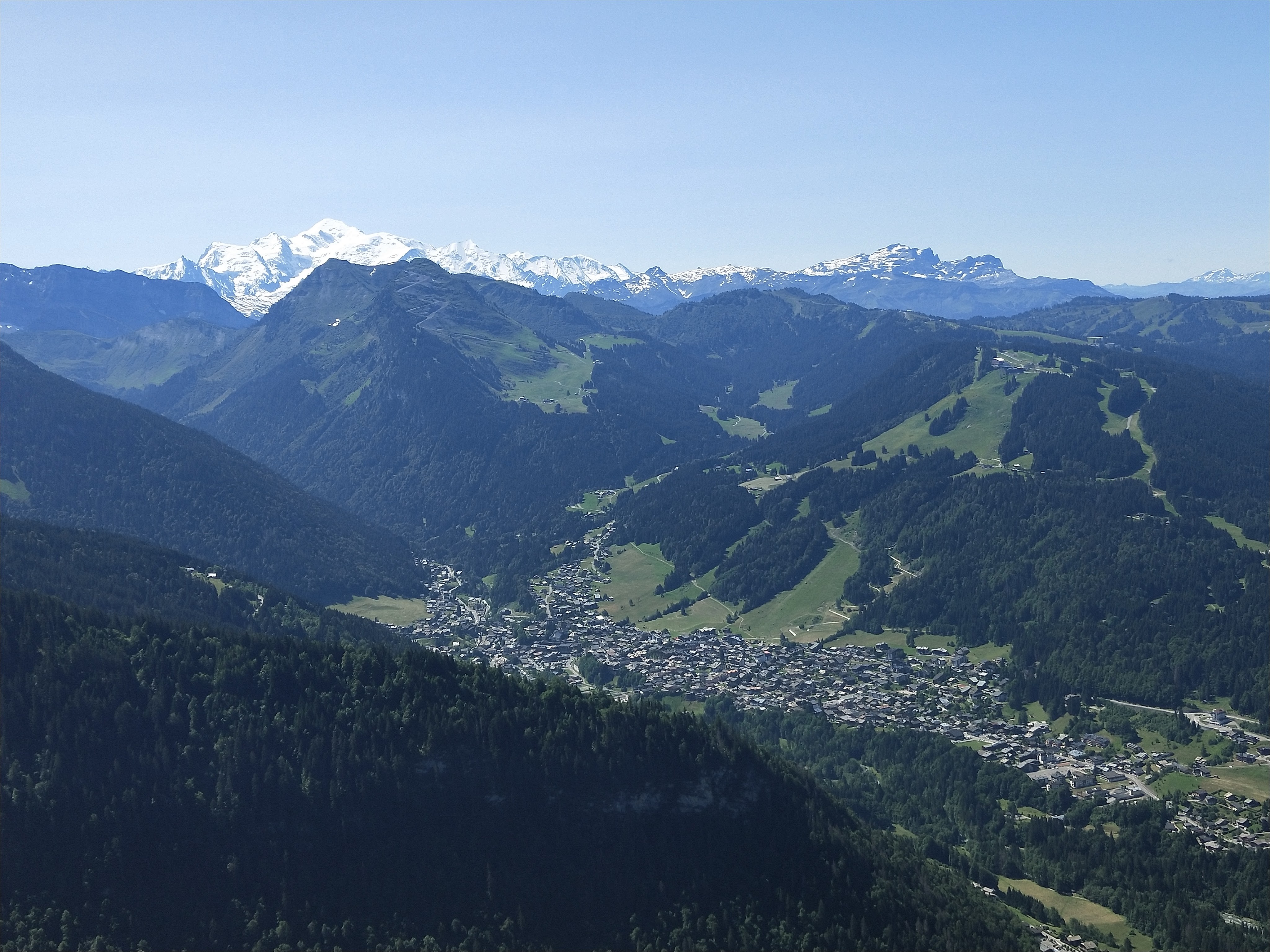 Vue sur Morzine ( et l’appartement !) en haut de la pointe de Nantaux