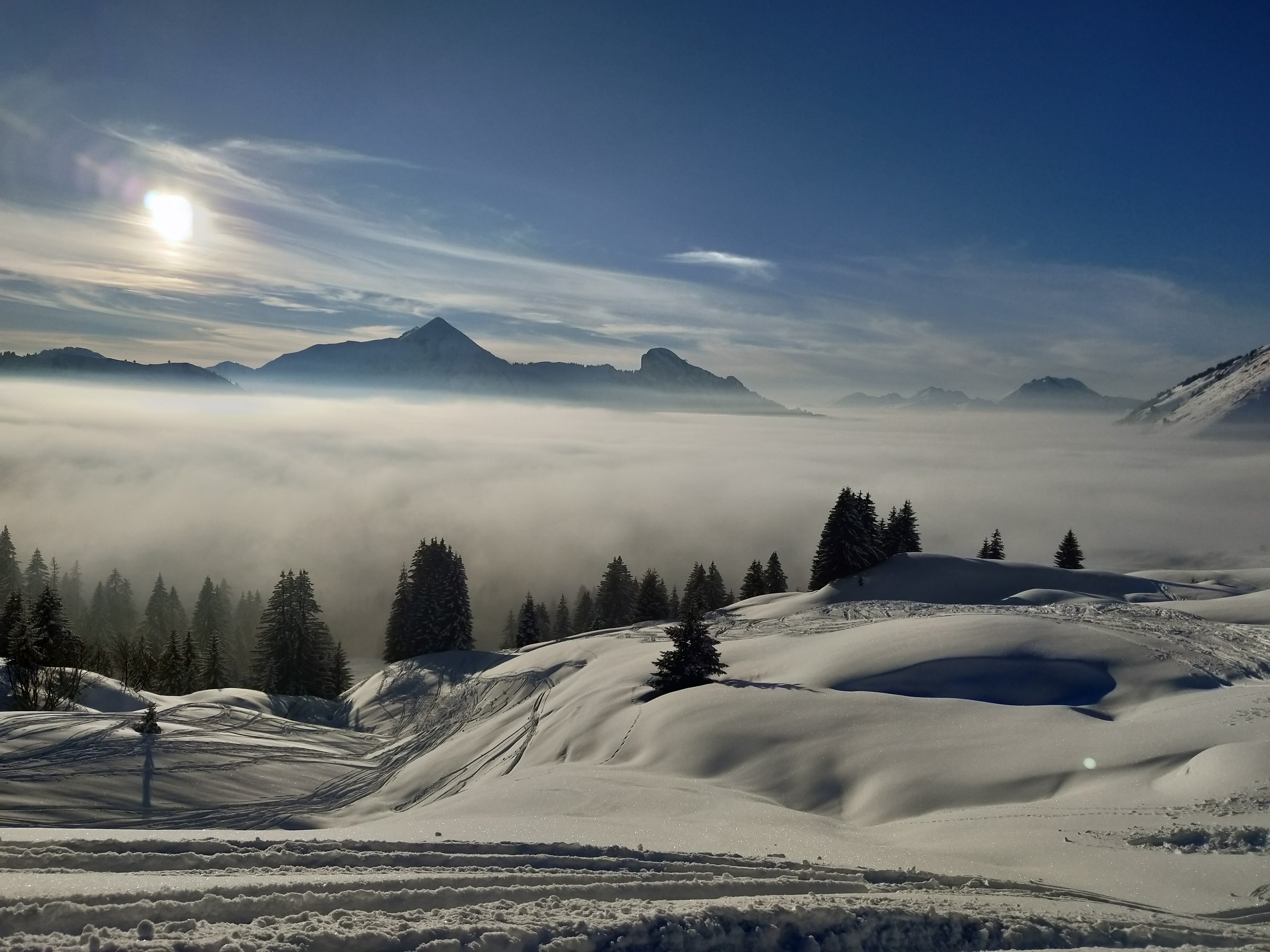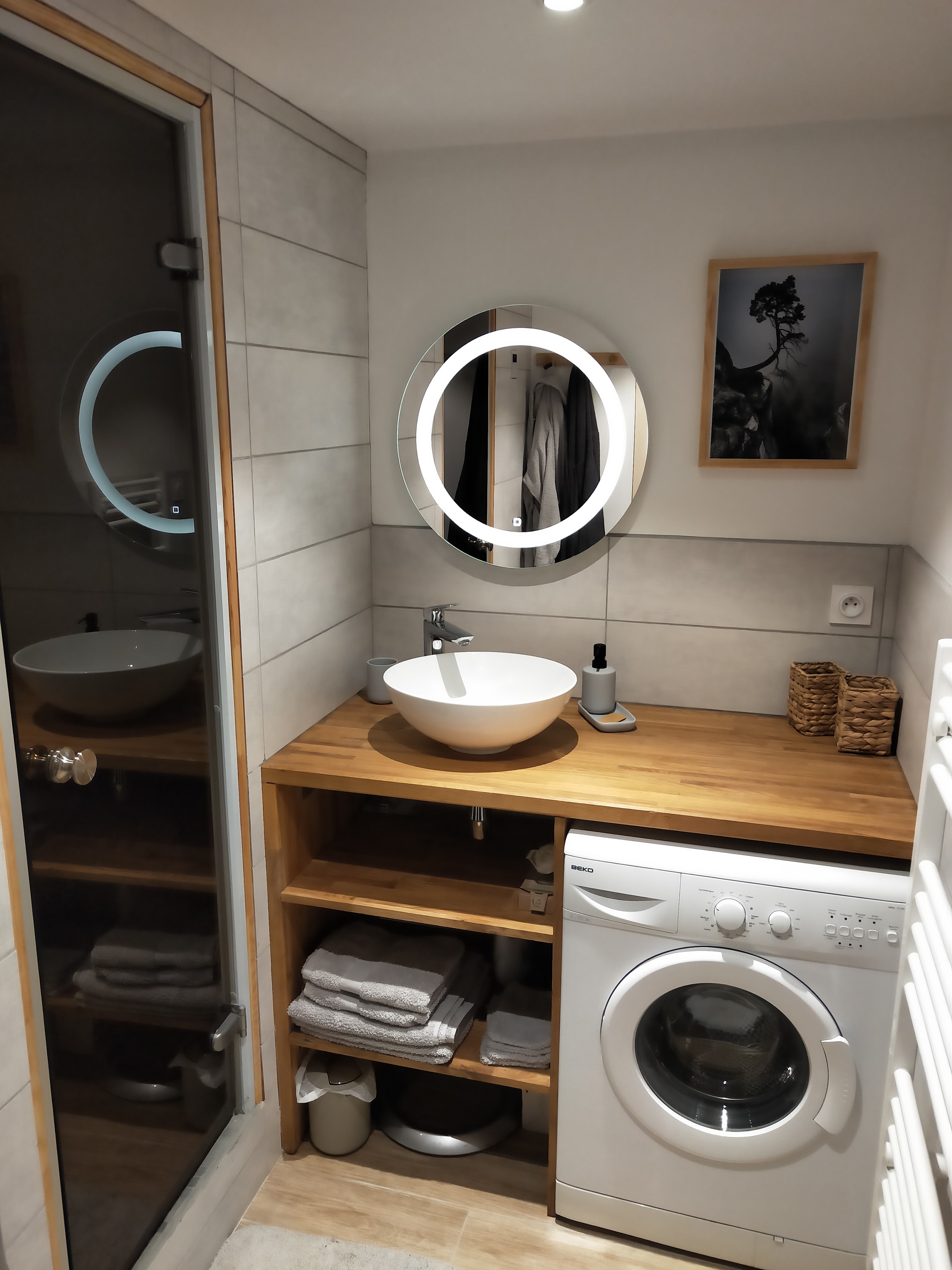 En ski de rando au col de Cou , fond le la vallée de la MancheSéjour cuisine ouverte. TV écran plat 107 cm.Coin cuisine : Lave vaisselle, four dont micro-ondes, plaque induction, 2 réfrigérateurs ( 2 X 199 L + 2 X 14 L de congélateur). TV plate 70 cm connectée Wifi (Netflix possible…), placards étagères / penderie. Place au bout du lit pour installer le lit parapluie dispo.Cellier : rangement, skis, vélo (2 à 3) ( ici photo pour exemple avec nos 2 VTT). Autocuiseur, aspirateur, appareil à raclette/pierrade, fondue, crêpière.