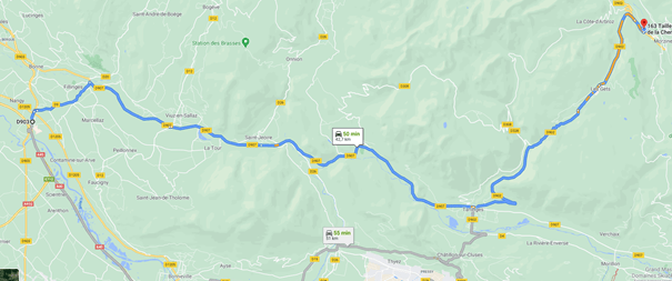 Faire 1,5 km sur cette Route de la Plagne, et tourner à droite sur Taille de Mas de la Chenalette. (on repère cette rue en face du restaurant la Chadanne).